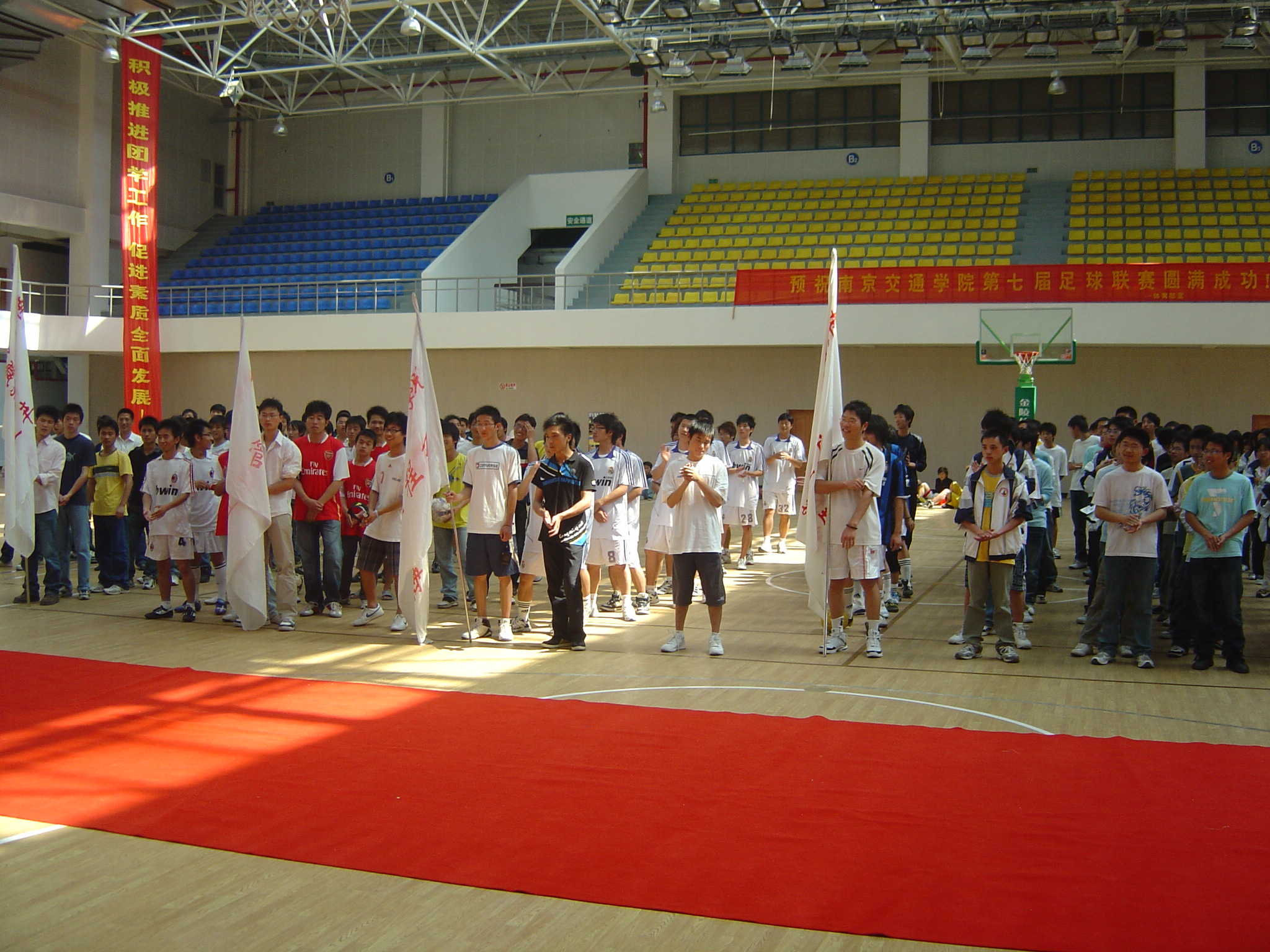 2008年5月7日下午1:30,在江宁校区行健馆内,江宁校区第七届学生足球联赛拉开了序幕,来自公路工程系、建筑工程系、汽车工程系、机电工程系、管理工程系、信息工程系、人文社科系等七个系部代表队参加了开幕式,在开幕式上,贾志顺老师代表体育部做了发言,并要求参赛各队奋勇拼搏,赛出水平,随后第七届学生足球联赛在院足球场举行。