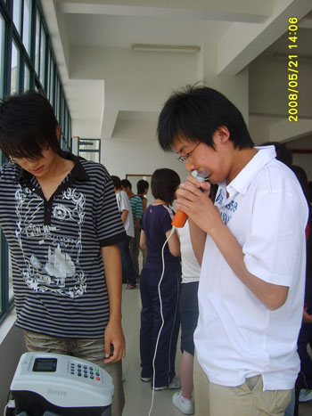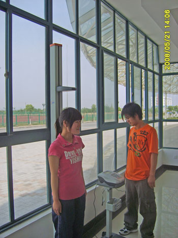江宁校区新生体质健康测试在体育部樊东声老师的带领下正在进行中,本次体质健康测试主要面对江宁校区07级新生,测试项目包括握力测试、肺活量测试、身高体重测试、台阶测试、立定跳远测试等五项内容,通过本次体质健康测试,使得学生能够了解自身身体状况,也为教师了解学生整体素质提供依据。图为学生正在进行测试。