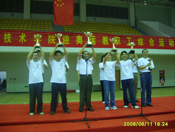 2008年6月11日下午1:30,“迎奥运教职工综合运动会”开幕式暨健身长跑活动在行健馆举行,孟书记、贾院长等院领导出席了开幕式,开幕式结束后,在学校领导带领下,全员教职工进行了环绕学校的健身长跑活动和教职工综合运动会,通过各个代表队的角逐,最终机关代表队获得了总分第一的好成绩,位列二至六名的分别是公路工程系代表队、建筑工程系代表队、汽车工程系代表队、信息工程系代表队、机电工程系代表队。荣获优秀组织奖的分别是人文社会科学系、管理工程系代表队、教辅代表队。