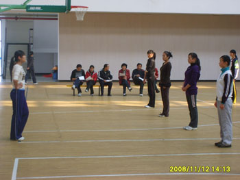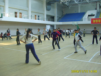 11月12日(星期三)下午,在行健馆内举行了新教师刘涛老师的健美操公开课的教研活动,整节课,刘涛老师始终以学生为中心,课堂教学中以学生的发展为本,确立健康第一的指导思想,着重培养了学生的创新精神和实践能力。将实施《新课标》中培养学生自主学练能力得以充分体现,在本次听课活动结束后,体育部教师也对本次课作了认真细致的点评,将课中的亮点和不足之处进行分析评价。