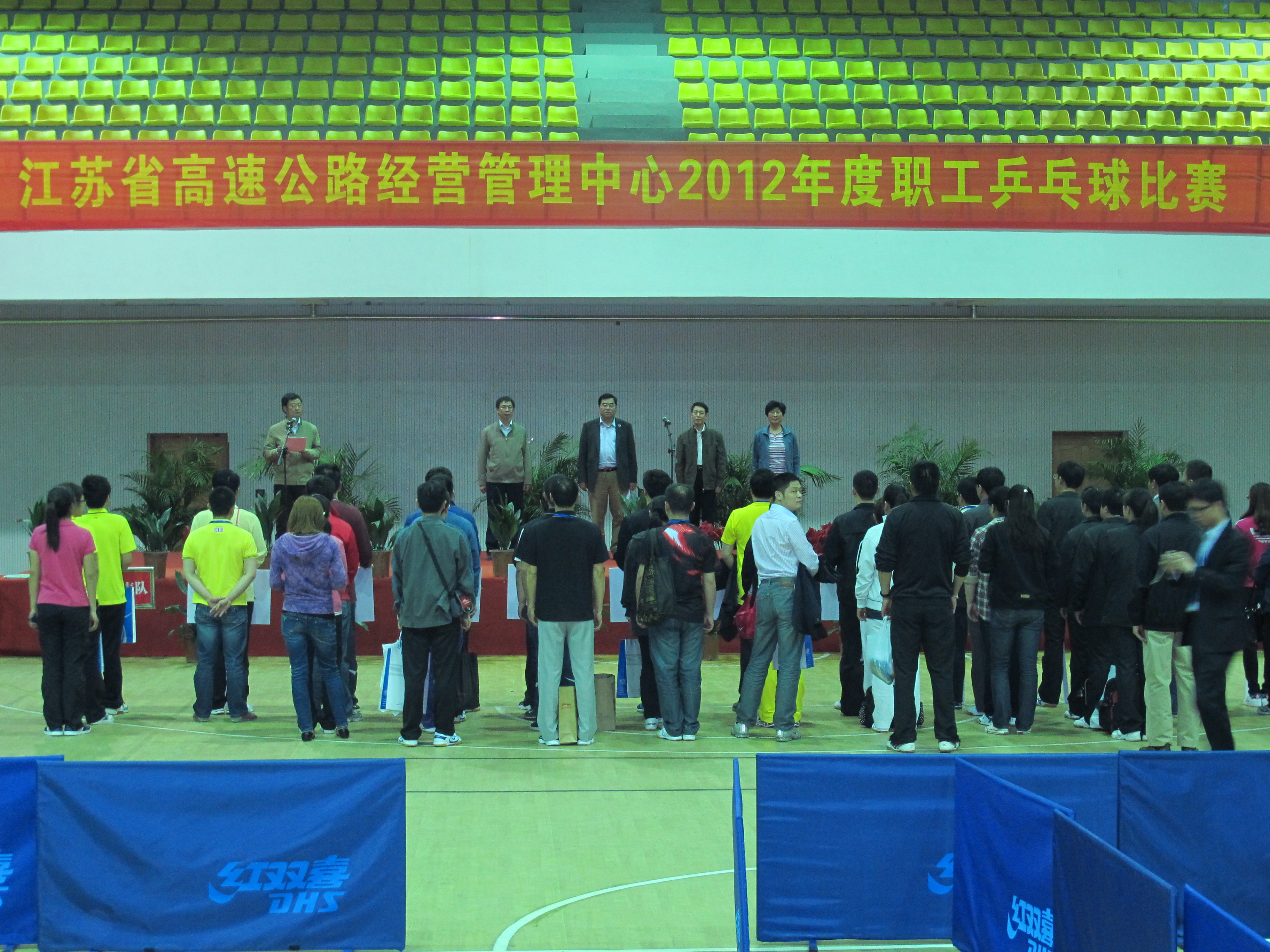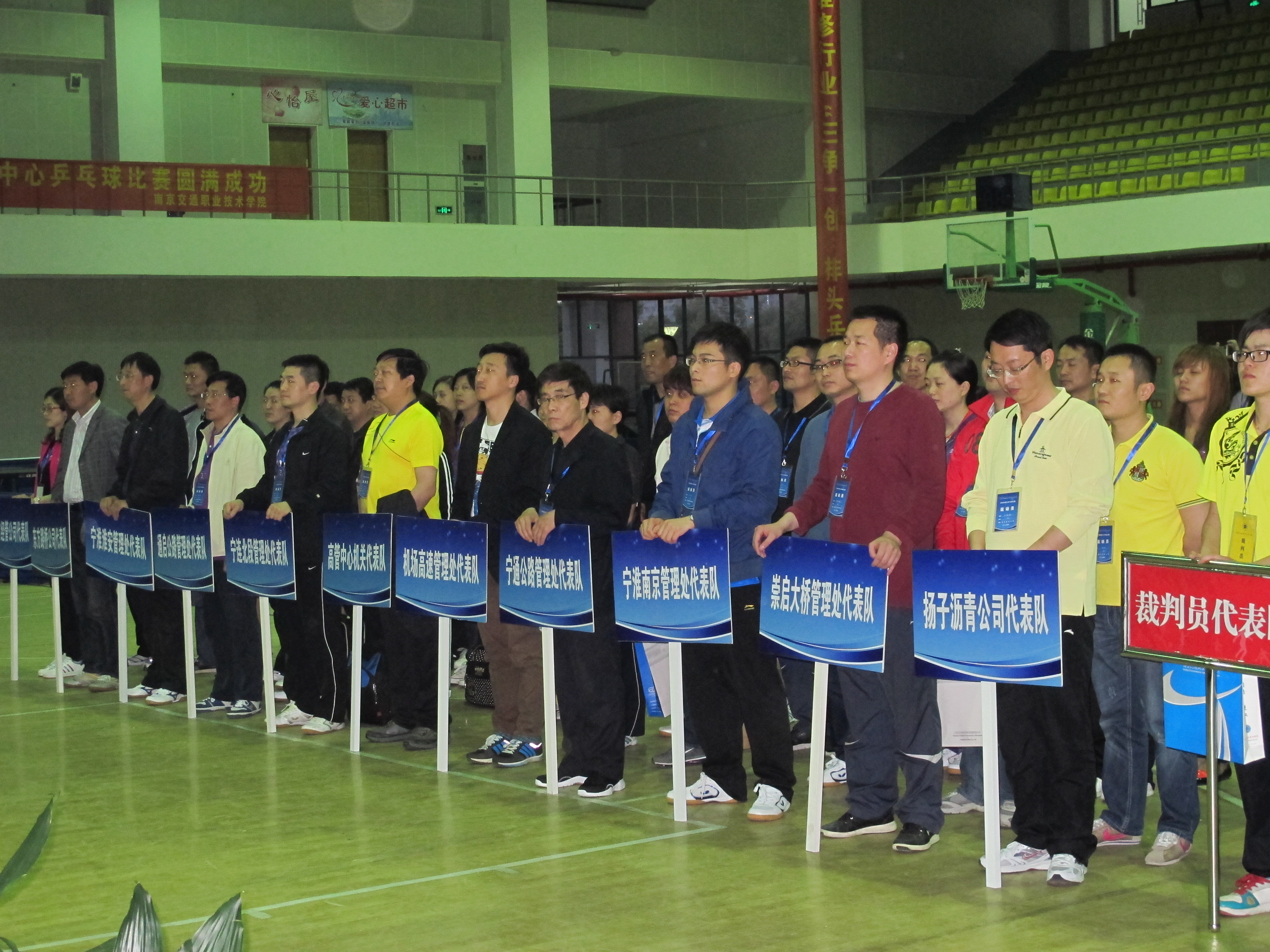 4月26日,为期三天的江苏省高速公路经营管理中心2012年度乒乓球比赛在我院举行。学院院长张毅,江苏省高速公路管理中心党委书记毛国葆,党委办公室主任孙永余,东方经营管理公司副总经理陈刚,体育部主任任忠芳等出席了开幕式并观摩了比赛。江苏省高速公路管理中心相关领导、大会工作人员、裁判员、全体运动员参加了开幕式。学院张毅院长在开幕式上致欢迎词。江苏省高速公路管理中心毛国葆书记致辞并宣布开幕。