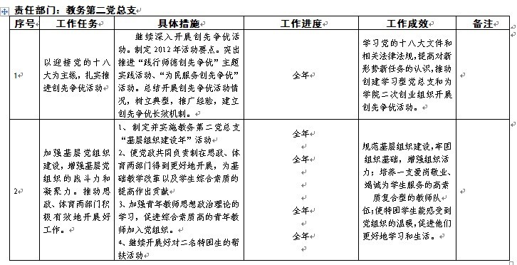 2012年党群部门工作任务分解表