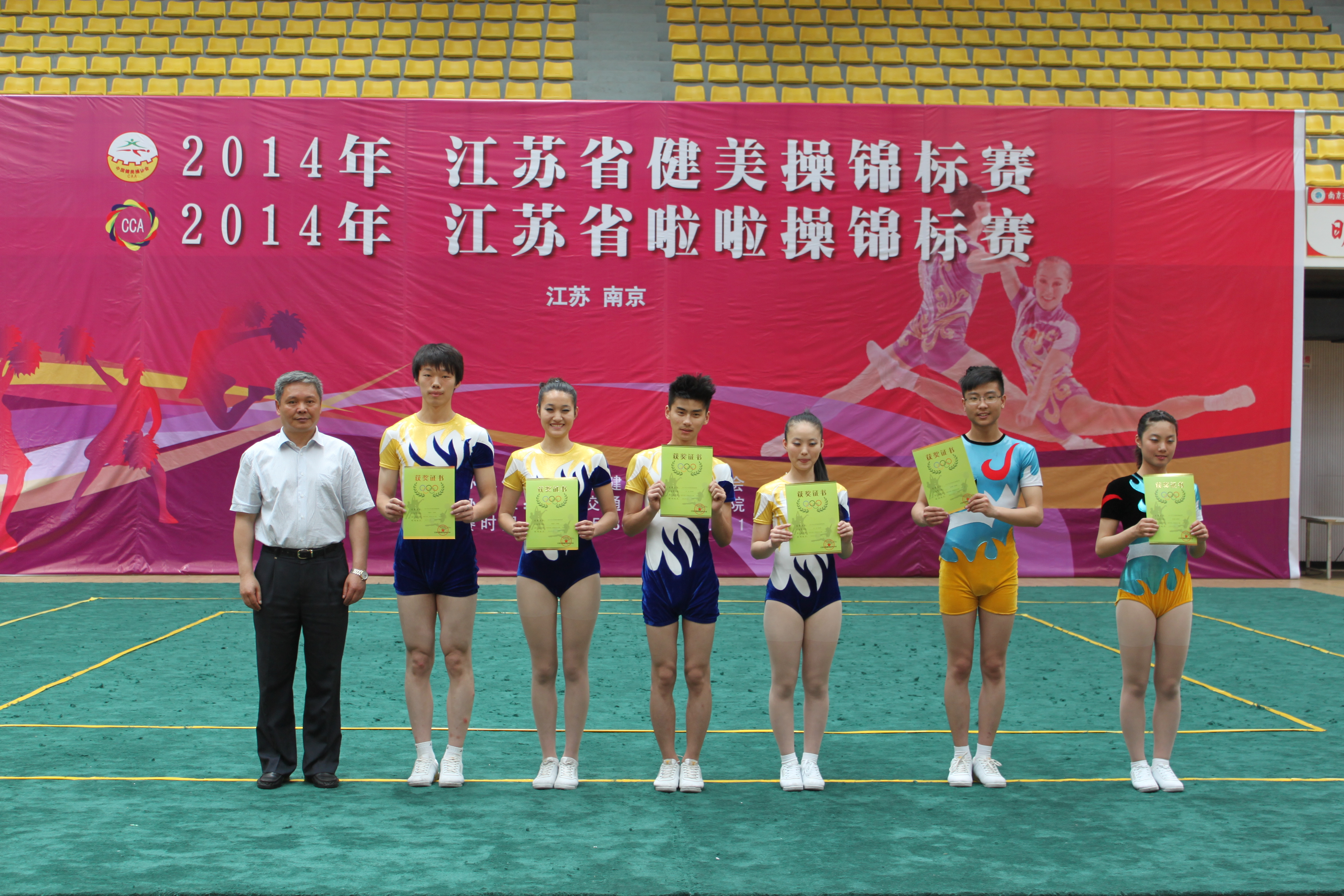 年江苏省健美操、啦啦操锦标赛”。本次比赛由江苏省健美操运动协会主办,分为小学组、中学组、大学组三个竞赛组别,共有761人参加比赛。我校啦啦操队在大学组集体街舞自选动作的比赛中荣获第一名。