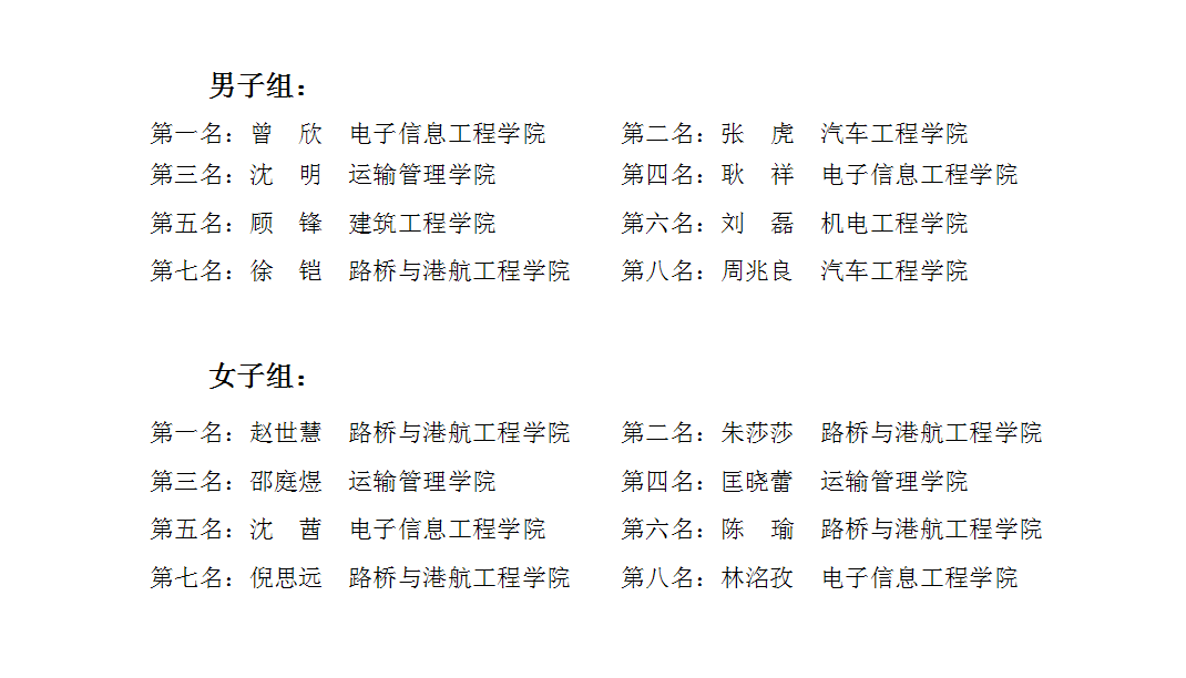 第六届体育文化节校园定向比赛于2014年11月26日圆满结束,经过四个多小时的紧张激烈的角逐,近百名男女运动健儿顺利完成2.5公里比赛,定向运动水平有了大幅度的提高,竞赛成绩有了较大的突破,现将本次比赛成绩公布如下: