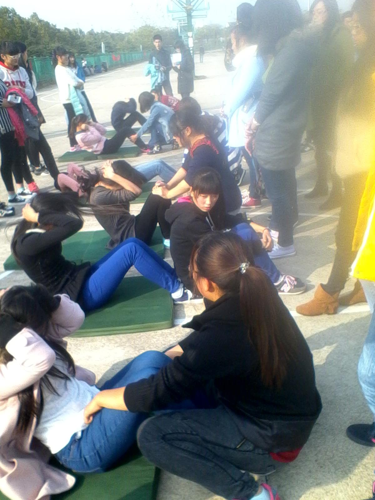 第六届体育文化节女子三项(仰卧起坐、踢毽子、跳绳)比赛于