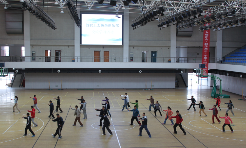 为进一步贯彻落实《全民健身计划纲要》和“每天锻炼一小时,健康工作50年,幸福生活一辈子”精神,丰富我校教职工课余文体活动,推动我校全民健身活动的广泛开展,指导教职工科学健身,提高广大教职工的身体健康水平。在学院领导的关心下,教职工太极拳俱乐部于10月28日在行健馆开展了太极拳学习交流活动。学院近四十余名太极拳爱好者参加了此次交流。太极拳含蓄内敛、以柔克刚、急缓相间的拳术风格使习练者的意、气、形、神逐渐趋于圆融一体的至高境界,在增强体质的同时可以提高自身素养,提升人与自然、人与社会的融洽与和谐。经常习练太极拳对久坐办公室的教职工来说非常有益,可以舒缓神经和压力。