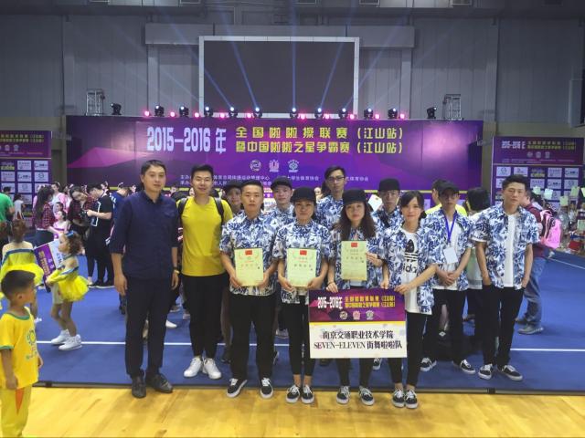 2016年全国啦啦操联赛于6月3-5日在浙江省江山市体育馆举行。本次比赛分为幼儿组、小学组、中学组、大学组、俱乐部组5个竞赛组别,共有69所学校的90个代表队总计1816名运动员参加比赛。由周权、徐婷芳、徐浩等同学组成的学院啦啦操代表队在参加大学甲组街舞自选动作的比赛中荣获第一名。