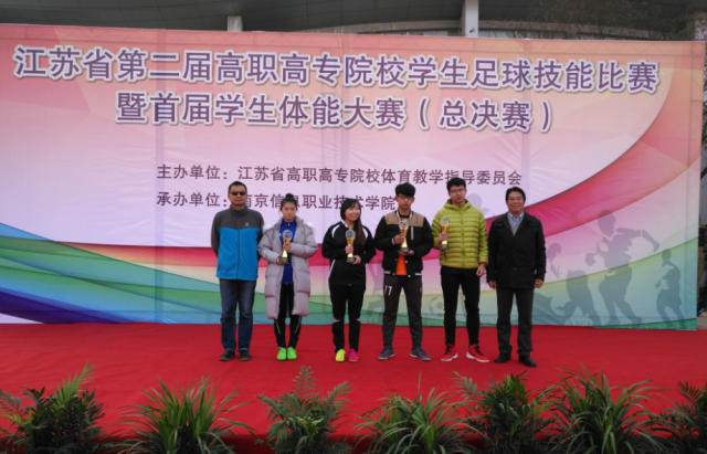 11月26-27日,由江苏省高职高专院校体育教学指导委员会举办的江苏省第二届大学生足球技能大赛总决赛在南京信息职业技术学院举行。全省24支代表队(南京、苏南、苏中、苏北分赛区预赛前6名)200多名运动员经过紧张激烈的角逐,由汽车工程学院的丁运雨(151041) 、郑华荣(161034)、王佳伟(161014),路桥与港航工程学院的罗浩伟(152012)、姜雨(162071)、蒋文(162071)以及运输管理学院的张凯龙(153013)、樊晓雨(153102)、程炳艳(163101)、王盈盈(163031)10人组成的学院代表队,在本次足球技能大赛总决赛四个分项比赛中获得团体二项第一,个人单项5人进入前8的好成绩。并荣获总成绩团体一等奖(排名第一),充分展示了学院足球健儿精湛的足球技术和勇争第一的拼搏精神。