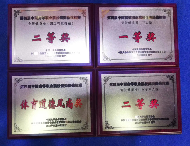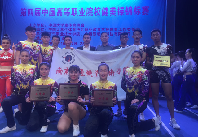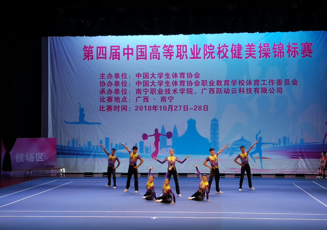 10月25日至28日,由中国大学生体育协会主办的第四届全国高等职业院校健美操锦标赛在南宁职业技术学院会议中心礼堂举行,全国36所高职院校453名运动员报名参赛,经过三天的激烈角逐,学院健美操队的张君言、吴雨笑等12名同学分别获得竞技组三人操一等奖、竞技组女子单人操二等奖、大众有氧舞蹈四级规定动作二等奖的优异成绩,学院代表队同时荣获“体育道德风尚奖”。