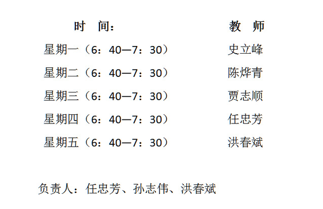 2018—2019学年(二)早操晨跑教师值班表