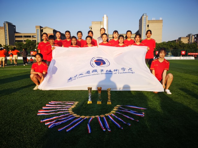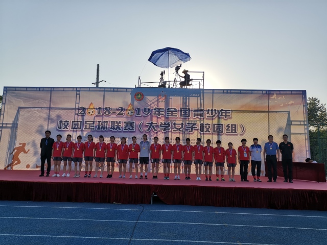2019年5月19-30日,由全国青少年校园足球工作领导小组办公室主办,江苏省教育厅、常州市教育局、常州市体育局承办的2018-2019年全国青少年校园足球联赛(大学女子校园组)在常州举行。来至全国各省高校23支代表队参加本次比赛。我院女子足球队的姑娘们顽强拼搏、团结协作,过五关斩六将,最终荣获冠军。王盈盈同学获得最佳运动员,陈烨青老师获得最佳教练员。