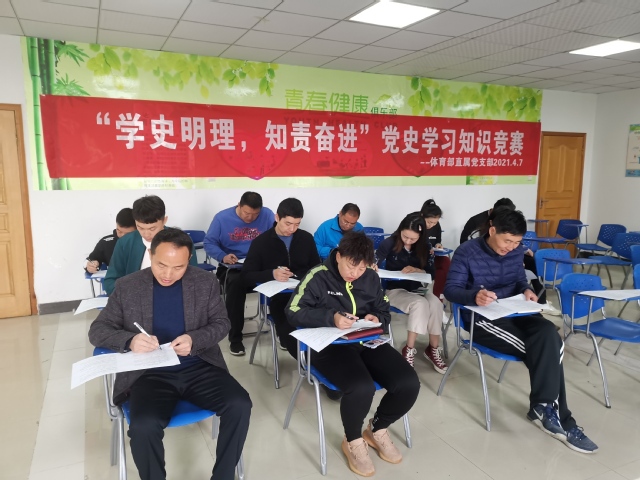 4月7日下午,为庆祝建党100周年暨体育部党史学习教育主题活动开展,体育部直属党支部在行健馆二楼学习室举办了“学史明理,知责奋进”党史学习知识竞赛活动,体育部全体党员参加了活动。