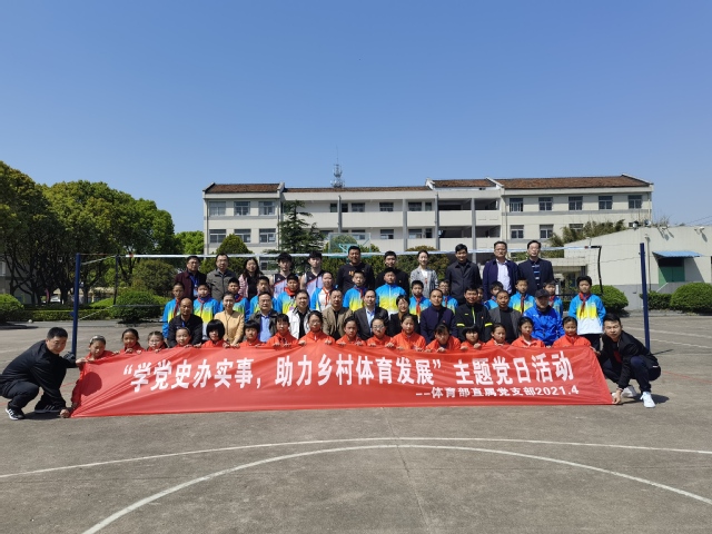 为深入开展党史学习教育,做到学党史、悟思想、办实事、开新局,以优异成绩迎接中国共产党建党100周年,持续推进支部建设,进一步增强“四个意识”, 坚定“四个自信”, 做到“两个维护”,在新的起点上推动学校体育工作不断取得新发展。04月09日,体育部直属党支部组织全体党员赴溧阳开展“学党史办实事,助力乡村体育发展”主题党日活动,学院副院长应海宁同志以普通党员身份参加活动,溧阳市政协副主席、教育局局长丁红全程陪同。