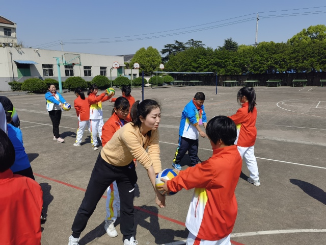 04月09日下午,学院应海宁副院长、支部史立峰书记带领体育部党员教师赴溧阳市新昌小学开展“助力乡村体育发展”党员志愿服务活动,为新昌小学排球项目建设、排球运动训练、体育品牌打造和竞技水平提高注入了“硬核力量”。溧阳市政协副主席、教育局局长丁红;溧阳市教育局副局长霍超群;溧阳市教育工会副主席朱忠平;溧阳市教育局基础教育科副科长郜立青;溧阳市新昌小学校长吴春生等溧阳教育局领导全程陪同。