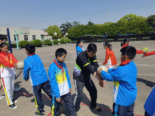 04月09日下午,学院应海宁副院长、支部史立峰书记带领体育部党员教师赴溧阳市新昌小学开展“助力乡村体育发展”党员志愿服务活动,为新昌小学排球项目建设、排球运动训练、体育品牌打造和竞技水平提高注入了“硬核力量”。溧阳市政协副主席、教育局局长丁红;溧阳市教育局副局长霍超群;溧阳市教育工会副主席朱忠平;溧阳市教育局基础教育科副科长郜立青;溧阳市新昌小学校长吴春生等溧阳教育局领导全程陪同。