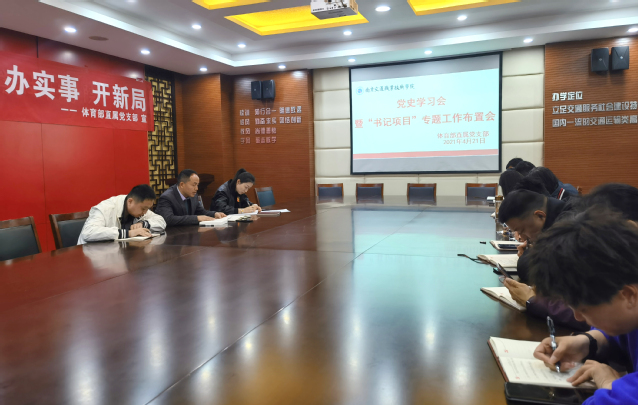 4月21日上午,体育部在行健馆会议室召开党史学习会暨“书记项目”与体育课程思政建设融合发展专题工作部署会。体育部全体党员参会,会议由直属党支部书记史立峰主持。