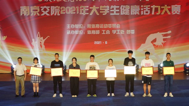 在迎接中国共产党建党100周年之际,为激发全校师生爱国热情,热情讴歌党的百年辉煌历程,营造校园红色文化氛围,6月17日晚,由校体育运动委员会主办,体育部、工会、学工处、团委共同承办的“庆祝建党100周年,健康活力我先行”南京交院2021年大学生健康活力大赛暨颁奖晚会在行健馆隆重举行。学院党委书记贾俐俐,纪委书记崔建宁,副院长杨益明、王道峰等院领导,相关职能部门、各二级院系部门负责人出席并观摩了比赛。