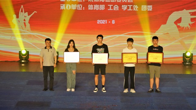 本次活动是学院“庆祝建党100周年”系列活动之一。为推动全校师生积极参与体育锻炼和体育竞赛,构建“教、练、赛”三位一体的体育文化氛围,体育部在本学期4-6月举办了篮球联赛、足球联赛、网球联赛等多个项目的学生体育比赛,参与人数达1000余人。晚会现场对各项赛事获奖单位和个人进行了颁奖。