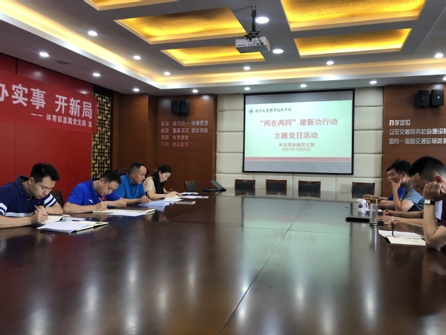 10月9日下午,体育部直属党支部在行健馆会议室开展“两在两同”建新功行动主题党日活动,支部委员会成员、全体党员教研室主任参加。