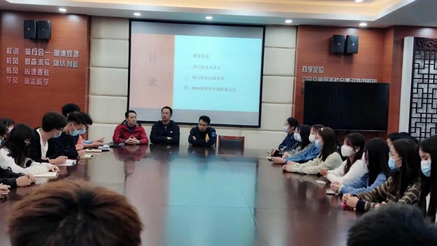 10月18日下午,校体育服务与管理俱乐部在行健馆会议室召开了部门第一次例会暨21级招新总结专题会议,参会人员有张旭老师、贺峰老师、刘永康师老师以及校体全体学生干部。