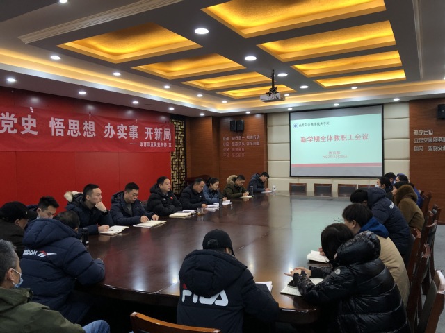 2月20日,体育部在行健馆会议室召开部门教职工会议,会议由体育部直属党支部书记史立峰主持,全体教职工参加会议。