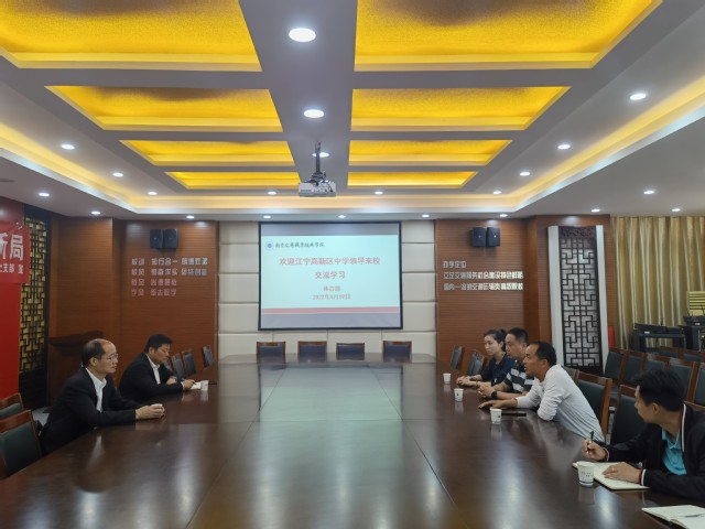 5月19日下午,江宁高新区中学芮校长一行2人来我校体育部参观交流。体育部主任孙志伟、直属党支部书记史立峰带领各教研室主任热情接待。