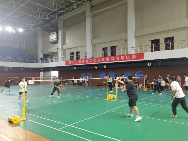 学院第十三届体育文化节学生羽毛球比赛近100多名学生参加。通过本次比赛学生增强身体素质,提高专项技能,增进身心健康,更好地促进学生之间的交流合作,培养德智体美劳全面发展的合格人才具体良好的促进作用。