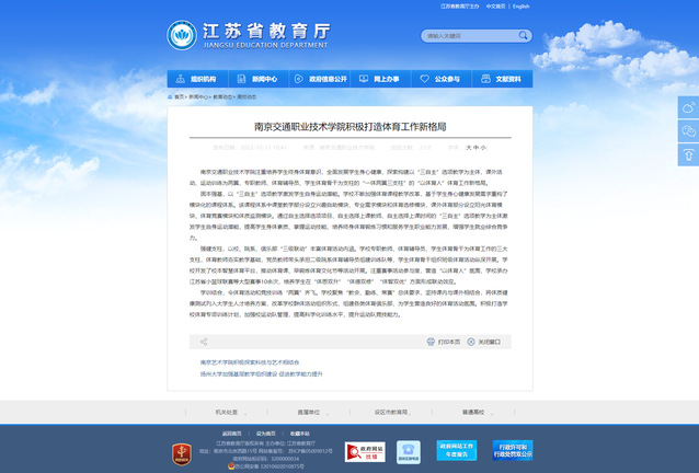 【江苏省教育厅官网】南京交通职业技术学院积极打造体育工作新格局