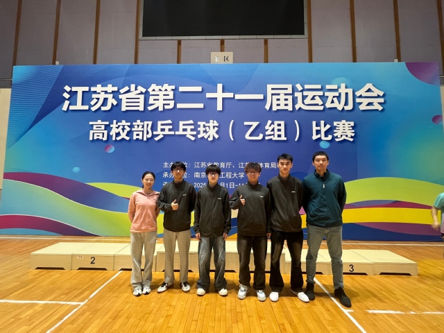 江苏省第二十一届运动会高校部(乙组)乒乓球比赛于11月1日至5日在南京信息工程大学举行,我院乒乓球队凭借出色的发挥与坚韧的意志,在全省41支劲旅中奋勇争先,最终斩获男子双打亚军与男子单打第四名的优异成绩,为学院赢得了荣誉。